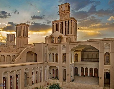 [ویرایش | ویرایش مبدأ]بادگیرها سمبلی از تمدن ایرانی هستند که از گذشتههای دور، از آنها برای خنک کردن و تهویهٔ هوای درون ساختمان استفاده میشد. باتوجه به کاربرد دیرینهٔ بادگیرها در ایران، میتوان آن را اختراع مردم ایران دانست.[۵] اعراب نیز در گذشته از بادگیرها استفاده میکردند و نمونههایی از آن در کشورهایی مثل مصر و سوریه وجود دارد.[۶] در مدارک تاریخی و ادبی، از قدمت این عنصر معماری، سرنخ روشنی بهدست نمیآید اما نامهای بادخان، بادخون، بادغر، بادآهنگ، بادآهنج، بادهنج، بادهلج و غیره در متنها و اشعار سُرایندگان نامدار ایرانی، تأییدی بر قدمت این سازه است.[۷] در متون تاریخی[۸] و نیز در سفرنامههای مسافران اروپایی که در روزگار پادشاهان صفوی به ایران آمده بودند، گزارشهایی (گاه مفصل) دربارهٔ ساختار و کارایی بادگیر وجود دارد.[۹] هنوز هم میتوان باقیمانده این بادگیرها را در اقلیم گرم و مرطوب جنوب و اقلیم گرم و خشک مرکز ایران مانند بندرعباس، یزد و اصفهان مشاهده کرد.
