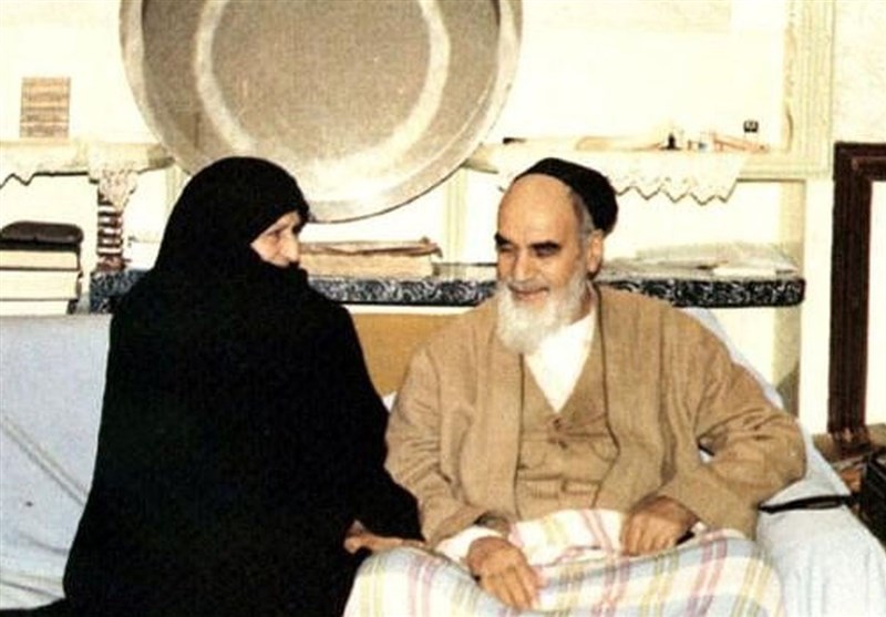 امام خمینی، بنیانگذار نظام جمهوری اسلامی ایران در کنار همسرش خدیجه ثقفی