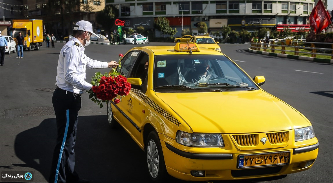 توزیع گل و ماسک توسط پلیس - مهر ۱۳۹۹ش